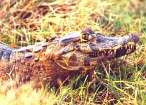 Apesar de ter sido bastante caçado a população de jacaré no Pantanal é abundante. Estudos realizados pela Embrapa Pantanal indicam que existem no mínimo três milhões e meio de jacarés adultos na região. Eles habitam rios, lagoas, corixos e vazantes. Na seca se concentram em poças a espera das chuvas e na cheia se espalham pelos campos inundados para se alimentar e reproduzir. |